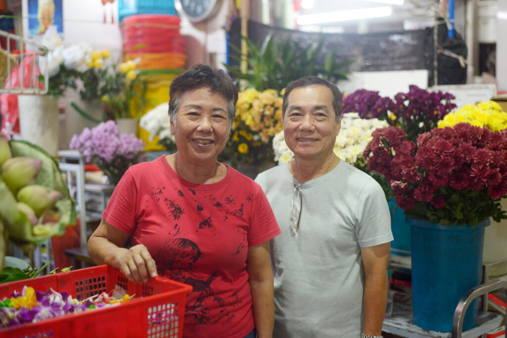 Next to Alvin’s stall, a veteran husband-and-wife team specialises in flowers for prayers. Chatting with the couple, we were awed by the depth of knowledge needed to do what they do. From which varieties of flowers to stock at different times of the year to the colours preferred for specific ceremonies, they are living encyclopaedias of the kind of specialist know-how that would be near-impossible to find online.