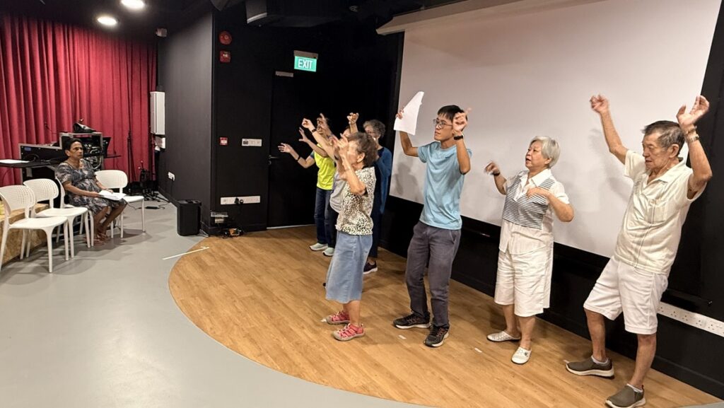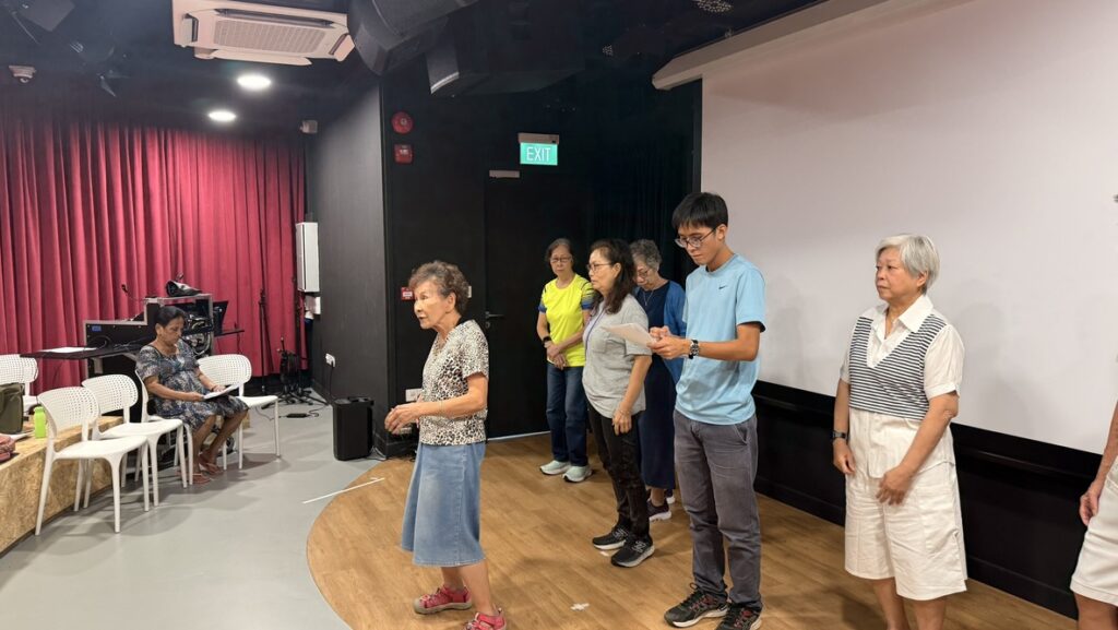 It’s the warmup activity for the community theatre classes at Goodlife Studio (Telok Blangah Towers), as the seniors prepare for their upcoming theatre performance in two weeks.